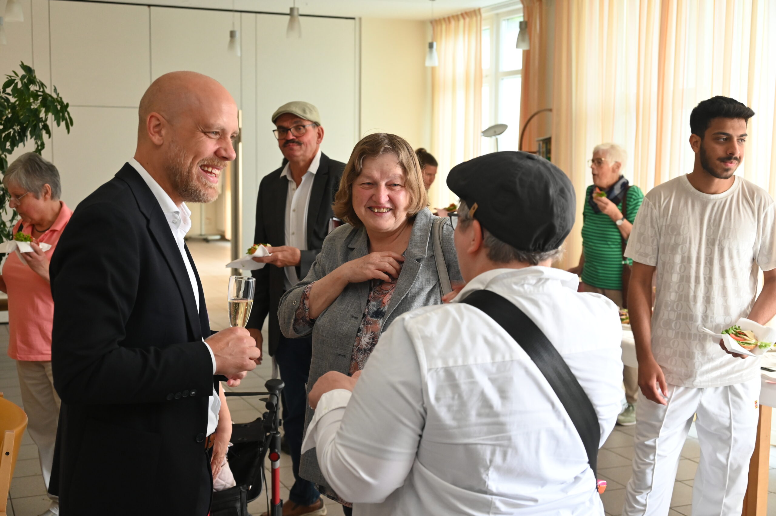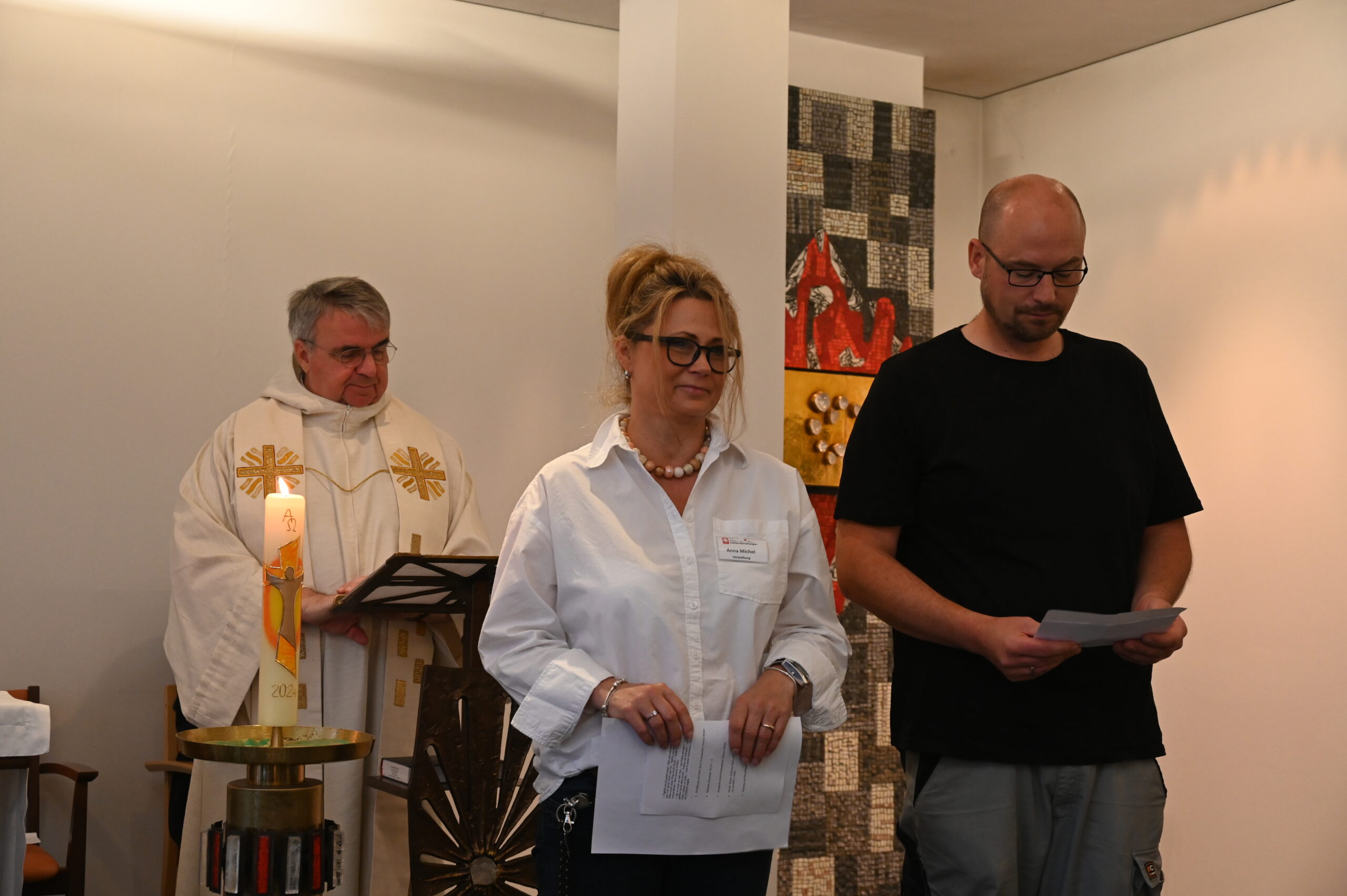 Siedler bedankte sich in seiner Ansprache herzlich bei den Mitarbeiterinnen und Mitarbeitern des Caritas-Marienheimes, bei seinen Eltern für die persönliche Begleitung, aber auch bei Daniela Schweizer, Geschäftsführerin des Marienvereines, Hospizbegleiterin Doris Ehrenreich und Gehörlosenseelsorgerin Claudia Walter für ihr Engagement. Schließlich leben im Marienheim gehörlose Bewohnerinnen, die von einer Hospizgruppe ehrenamtlicher – und selbst gehörloser Frauen – betreut werden. Das deutschlandweit einzigartige Konzept wird im Marienheim bereits seit 2005 gelebt. „Besonders hier ist die körperbetonte Arbeit, denn wer nicht hören kann, benutzt seine Hände und sein offenes Herz“, stellte Walter schmunzelnd fest.